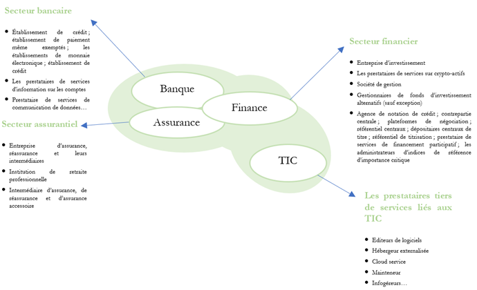Les entités du secteur bancaires, assurantiel et financier sont dénommées entités financières dans le cadre de DORA.
