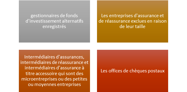 Il est à noter que certaines entités nommément désignées bénéficient déjà de ce cadre simplifié : établissements de paiement exemptés, établissements de monnaie électronique exemptés, petites entreprises d’investissement non interconnectés, petites institutions de retraite professionnelle.